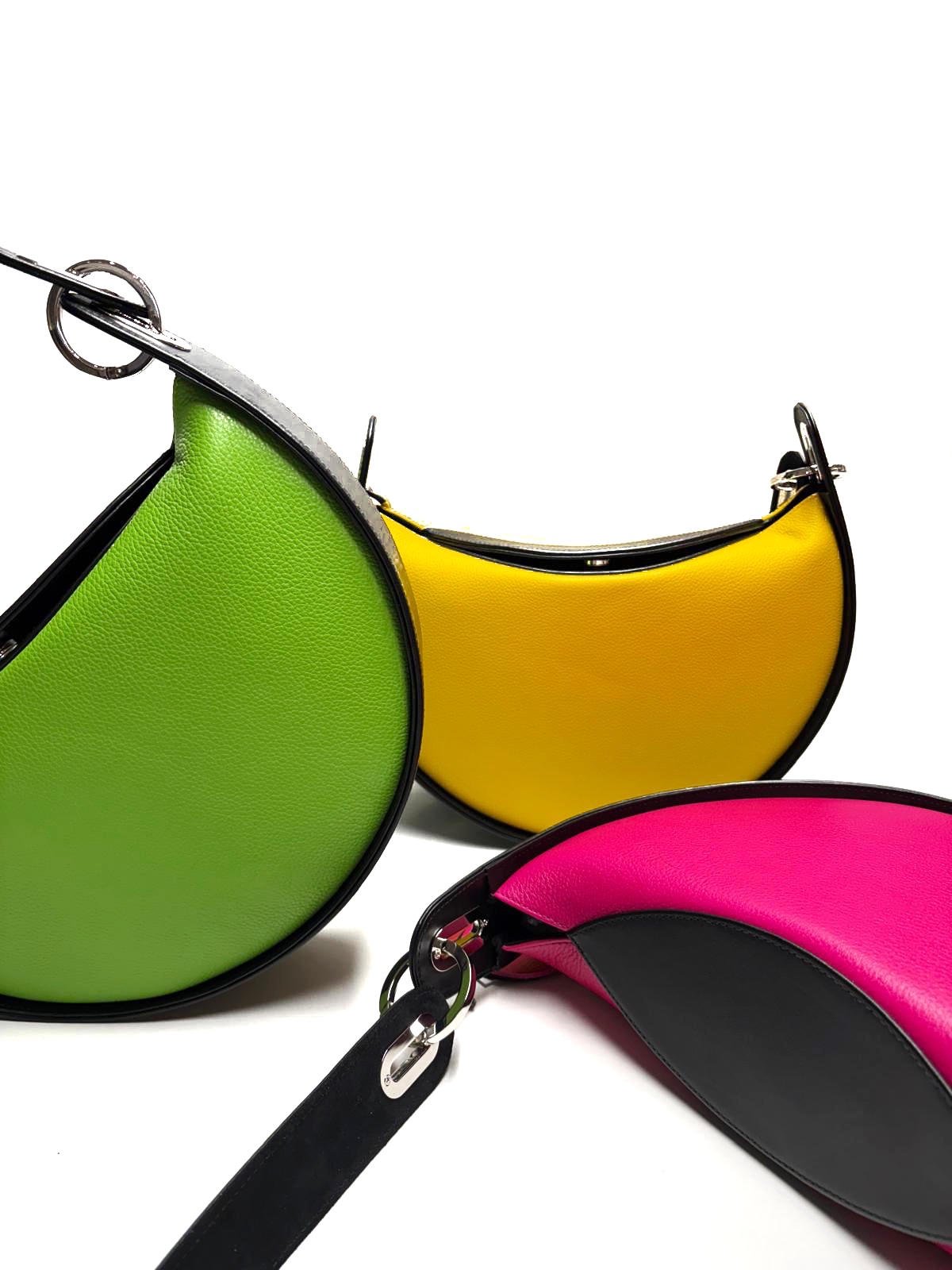 This collection contrasts colors that underline the essential dynamics of the object. It is similar to the painter’s work, which passes through all the color palettes, and through the sketch expresses the essential movement of the form and its expression.