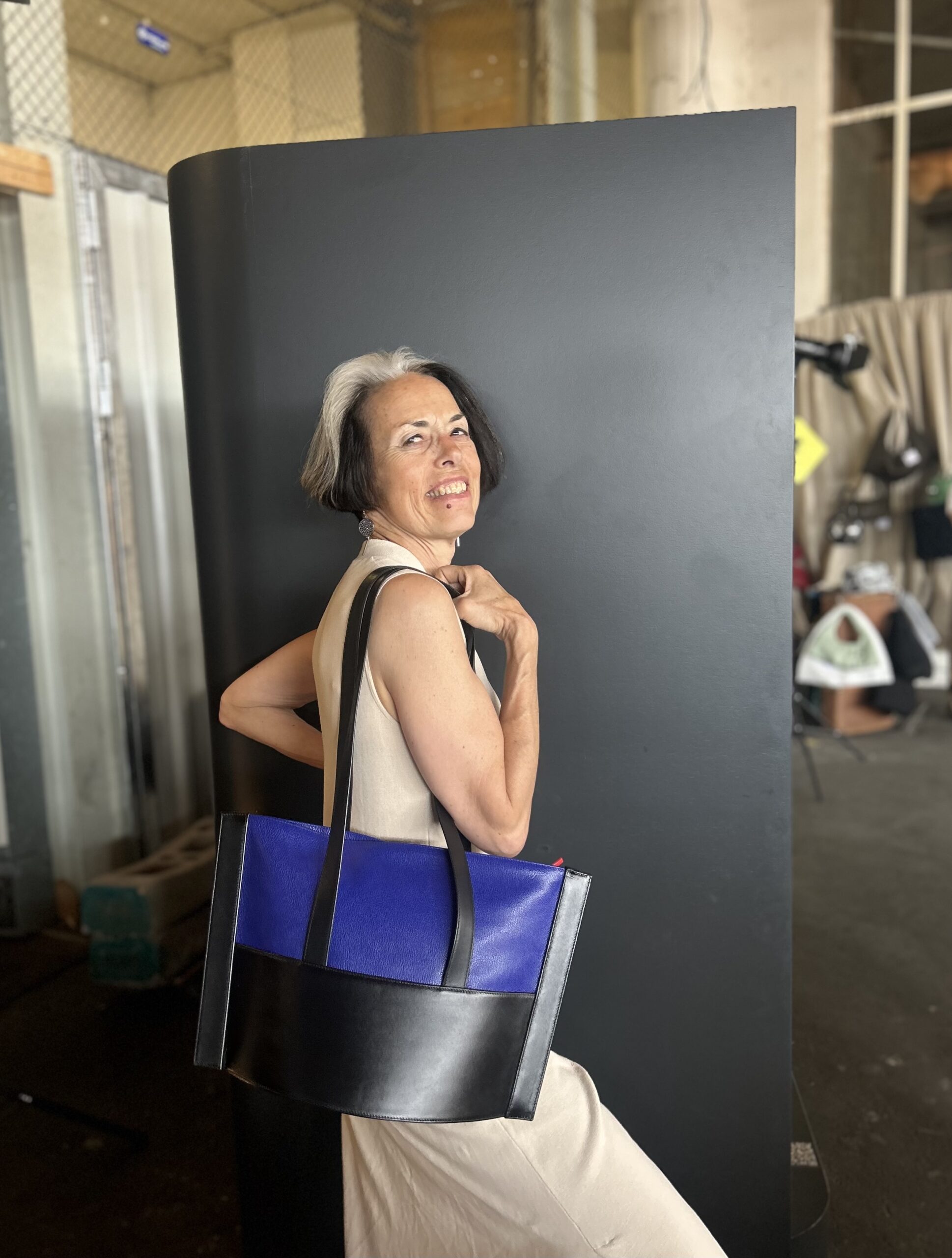 cuir lisse noir et grainé bleu