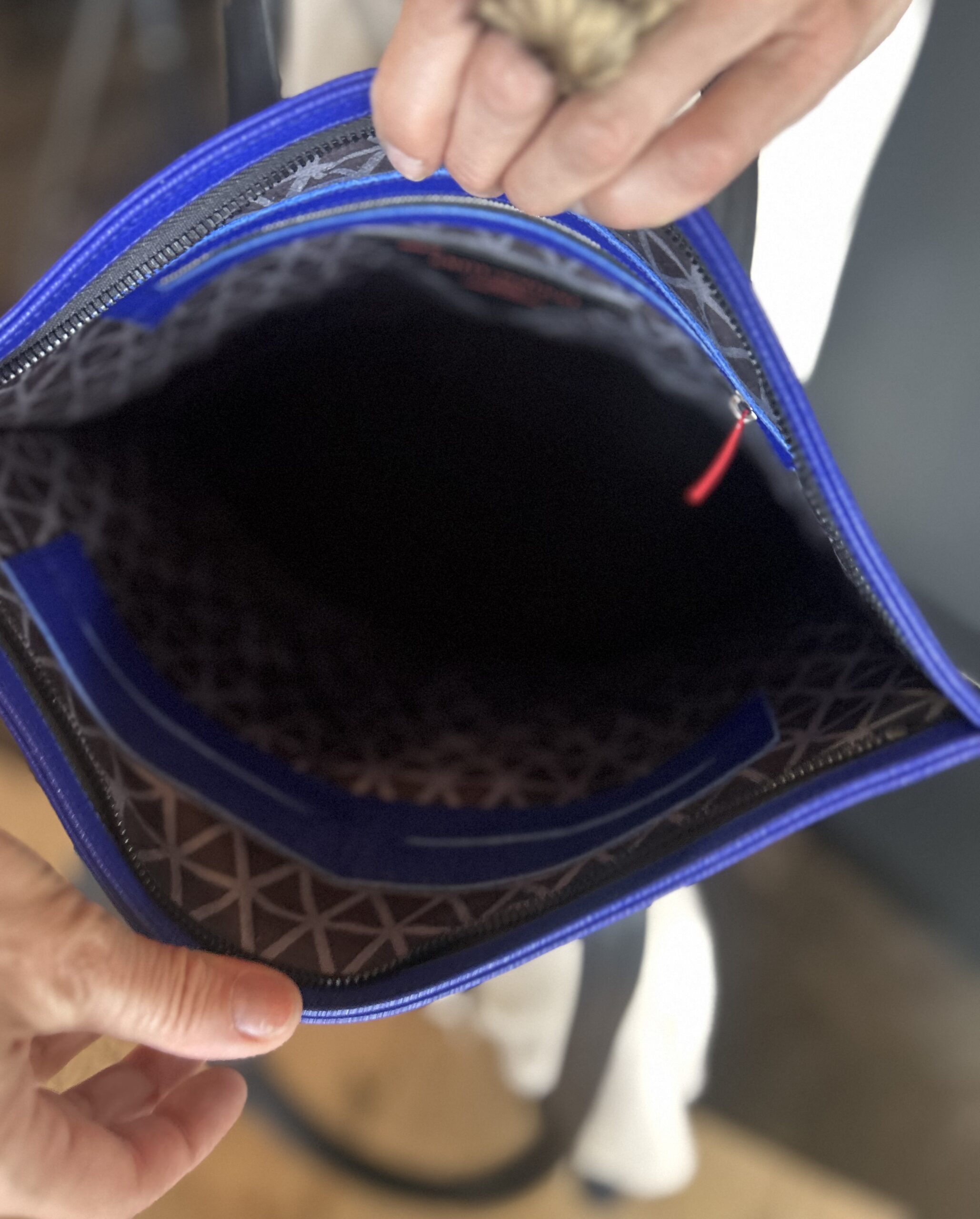 doublure : alcantara gris et noir triangle